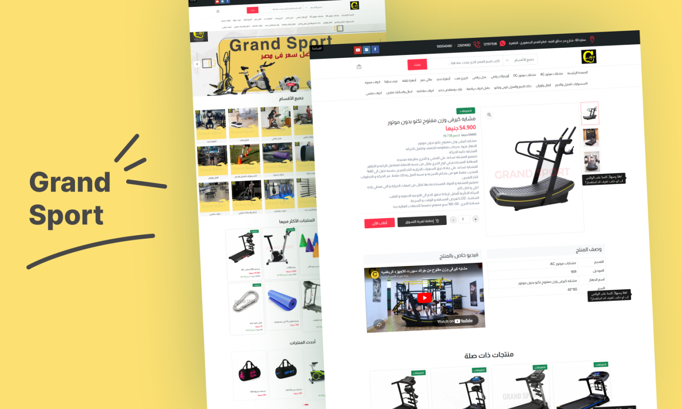 Grand Sport Egypt is an e-commerce platform developed to provide customers with a seamless online shopping experience for sports and fitness equipment. The website features a wide range of products including treadmills, stationary bikes, elliptical trainers, weight machines, fitness accessories, and home gym solutions.